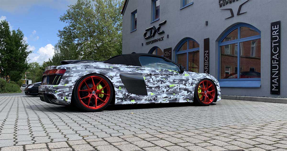 | Radsatz | Sonderanfertigung: HRE Schmiedefelge P101 in 9x20,0 mit 245/30-20 an der Vorderachse HRE Schmiedefelge P101 in 12x21,0 mit 325/25-21 an der Hinterachse Finish Brushed Red |