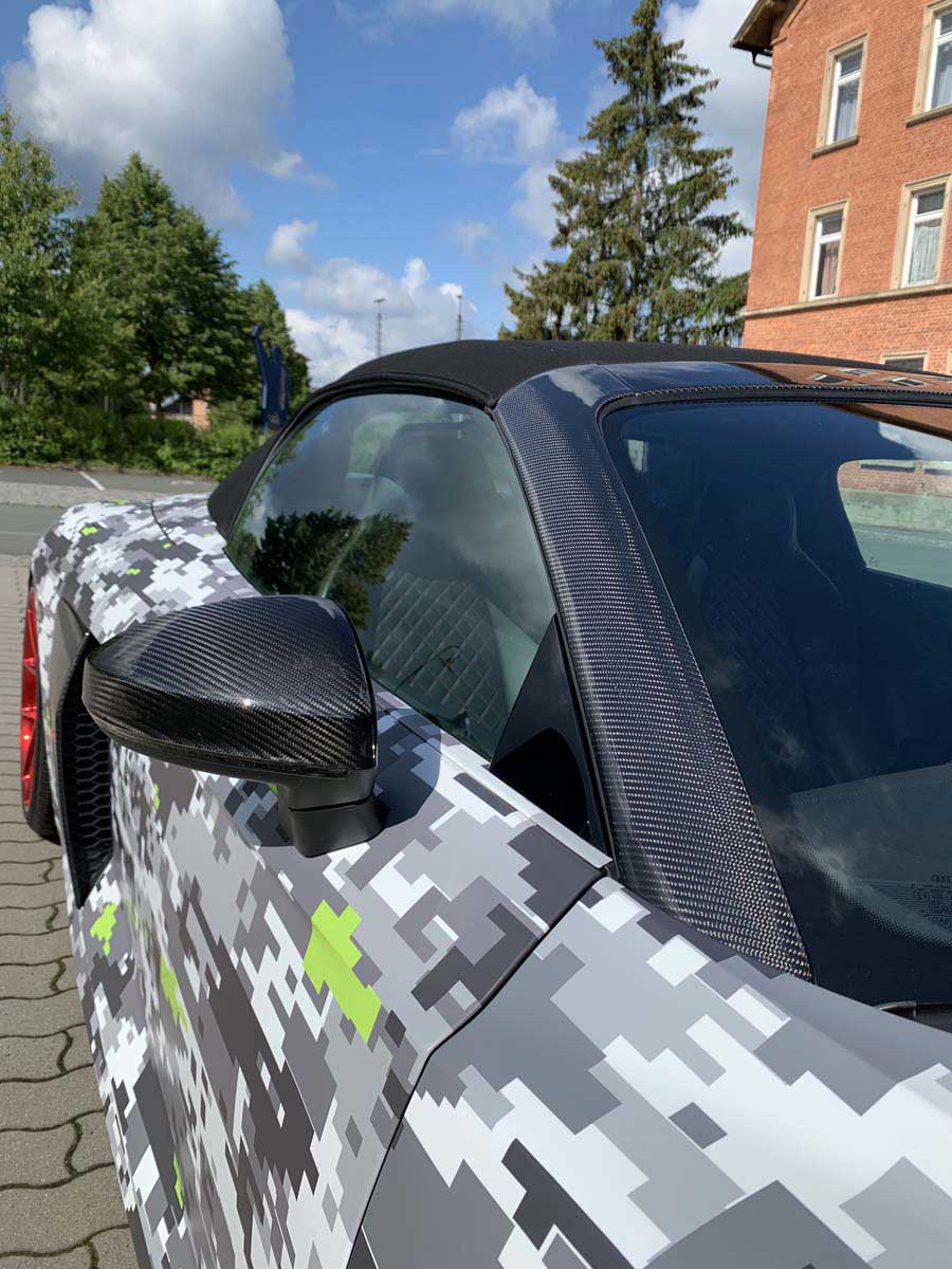 | Carbon | Die A-Säulenverkleidung haben wir mit Carbon überzogen. |