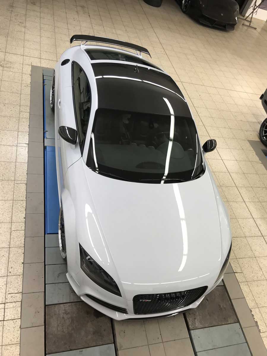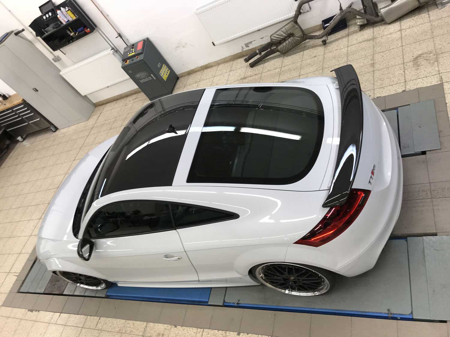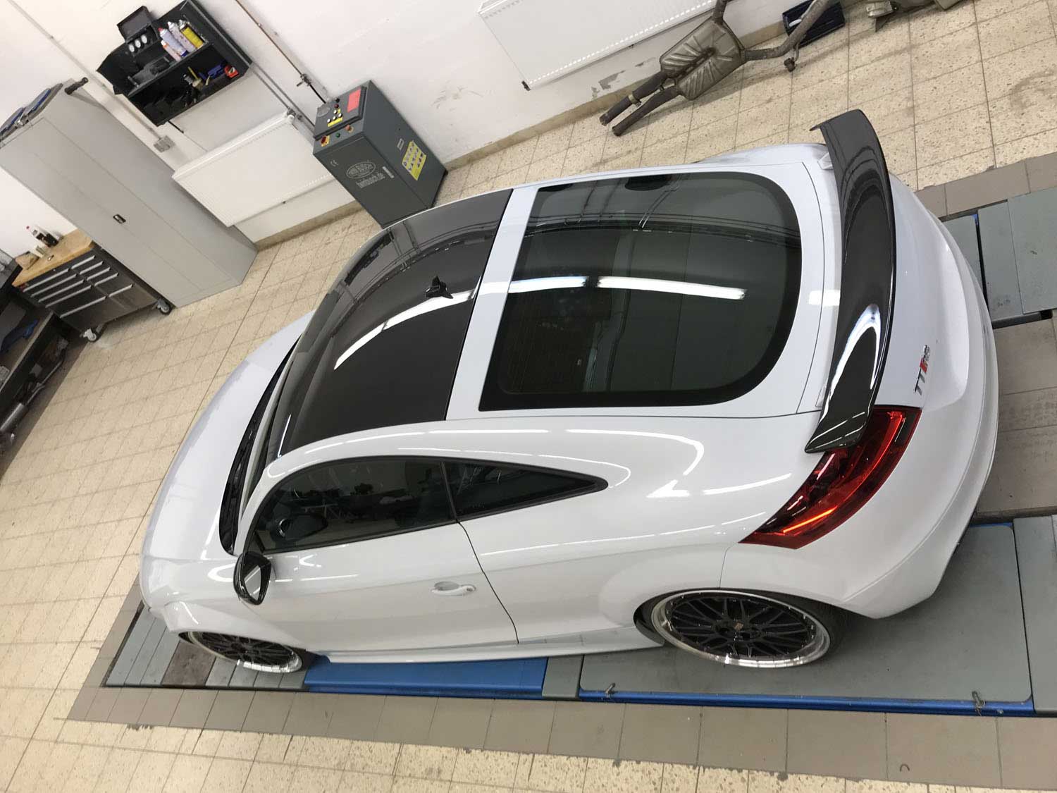 | Carbon | Das Carbondach für diesen TT haben wir speziell angefertigt, montiert und Lackiert. |