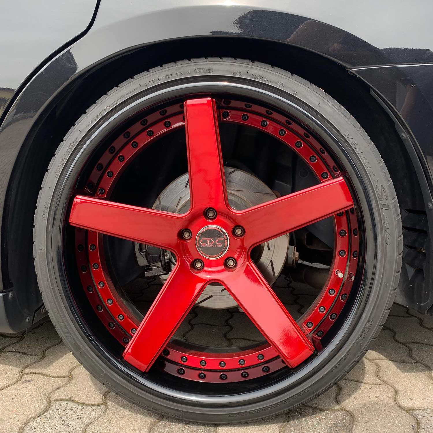 | Radsatz | VELLANO VUH in 10x22,0 mit 265/30-22 rundum Finish: Stern Gebürstet Candy Red Außenbett Glanz Schwarz Spurplatten 5mm(VA) und 3mm(HA) |
