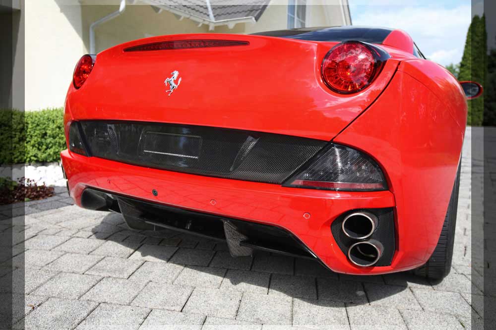 | Abgasanlage | Die für den California eigenst angefertigte Abgasanlage verbirgt in sich ein Klangerlebniss. Der Edelstahl-Endschalldämpfer ist mit einem Klappensystem ausgerüstet welches über die RACE Funktion im Innenraum bedien bar ist. Mit geschlossener Klappe genießen Sie die Ruhe einer Sportlichen V8 Luxuslimousine, nach Betätigung und geöffneter Klappe erleben Sie Ihren 8 Zylinder Sportwagen. |
