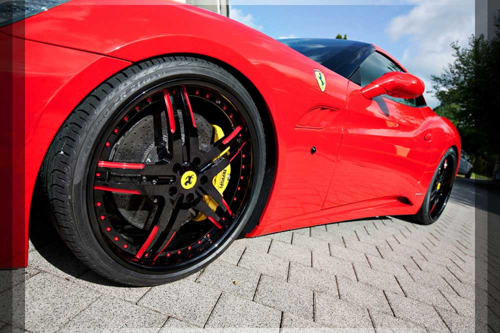 | Radsatz | Unsere Leichtmetallfelgen Forged VSU im sportlichen Design mit NERO-Finish fügen sich perfekt in die Siluette des California ein. Verbaut wurden hier 12.0x22.0 mit 315/25-22 an der Hinterachse und 9.0x21.0 mit 255/30-21 an der Vorderachse. |