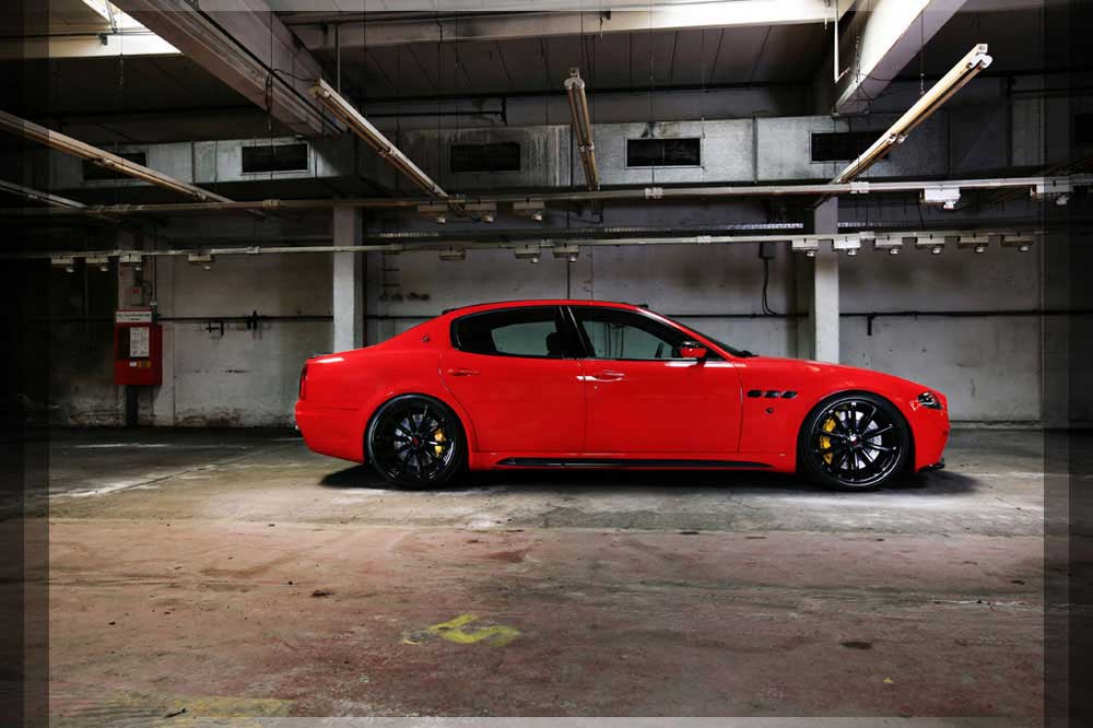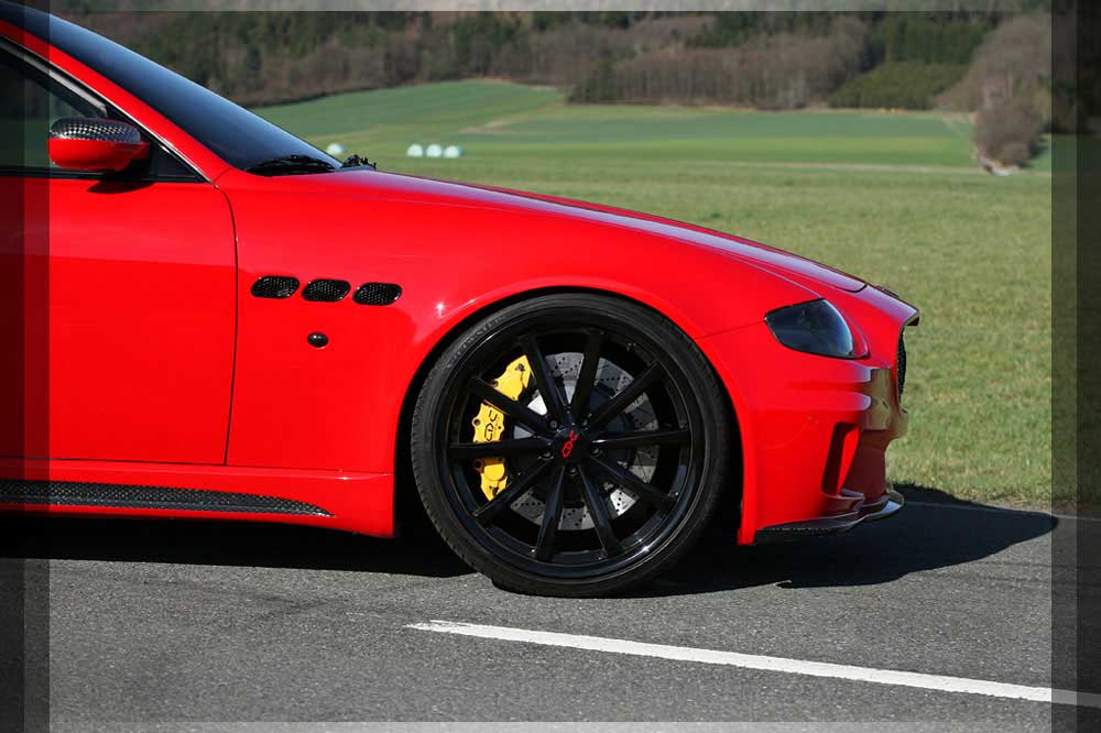 | Bremsen | Unser gigantisches speziell für den Quattroporte gefertigte High-Performance Bremssystem sorgt für ein Fading freies bremsen aus hohen Geschwindigkeiten mit einer gleichbleibenden enormen Bremskraft. Das System besteht aus 2-teiligen gelocht und geschlitzten Bremsscheiben Verbindung mit Aluminium Bremssättel und Stahlflexleitungen. Vorderachse: 12 Kolben Bremssattel in Verbindung mit 405x36mm 2-teiligen Bremsscheibe Hinterachse: 4 Kolben Bremssattel in Verbindung mit 380x34mm 2-teiligen Bremsscheibe Die Bremssättel wurden in GIALLO Lackiert. |
