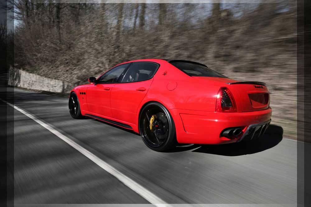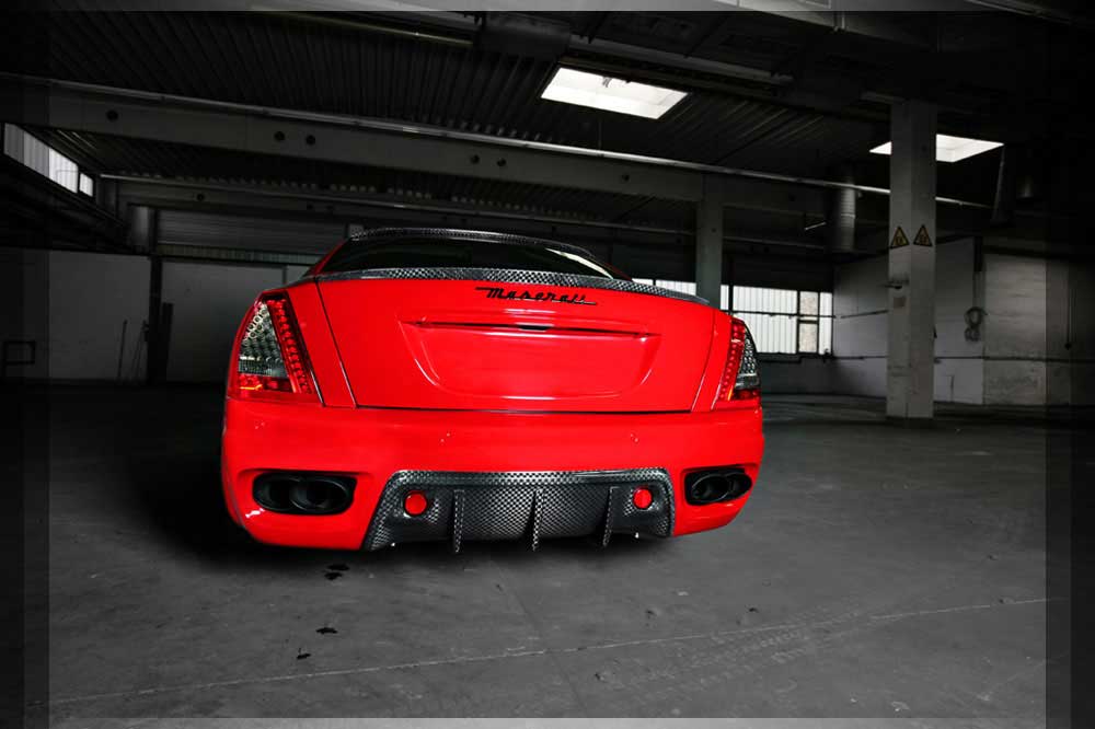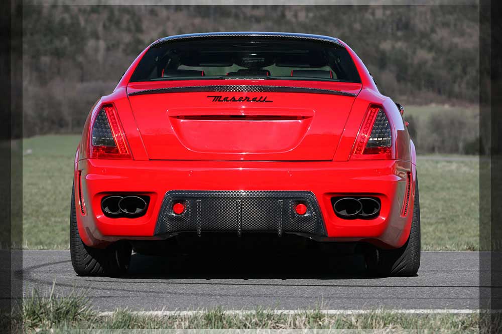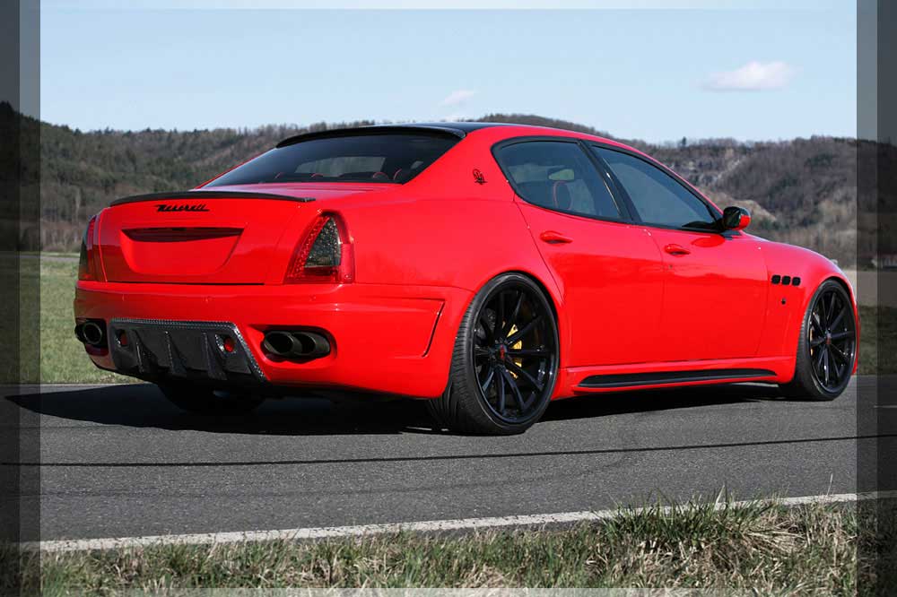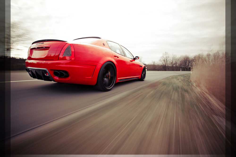 | Abgasanlage | Die für den Quattroporte eigenst angefertigte Abgasanlage verbirgt in sich ein Klangerlebniss. Der Edelstahl-Endschalldämpfer ist mit einem Klappensystem ausgerüstet welches über die SPORT-TASTE im Innenraum bedienbar ist. Mit geschlossener Klappe genießen Sie die Ruhe einer V8 Luxuslimousine, nach Betätigung und geöffneter Klappe erleben Sie Ihren 8 Zylinder BI-Kompressor Sportwagen. |
