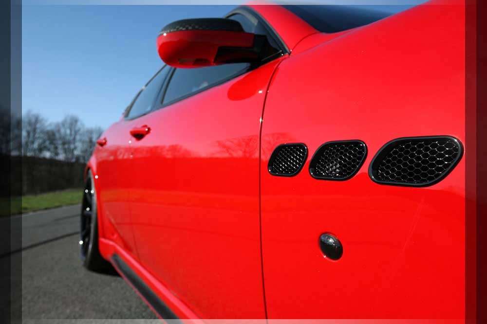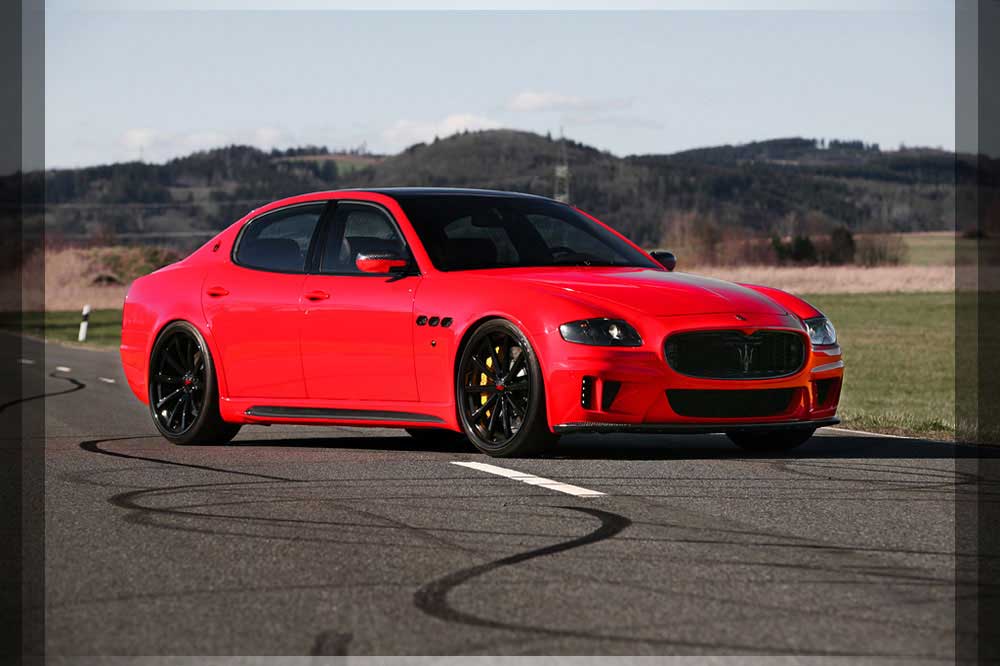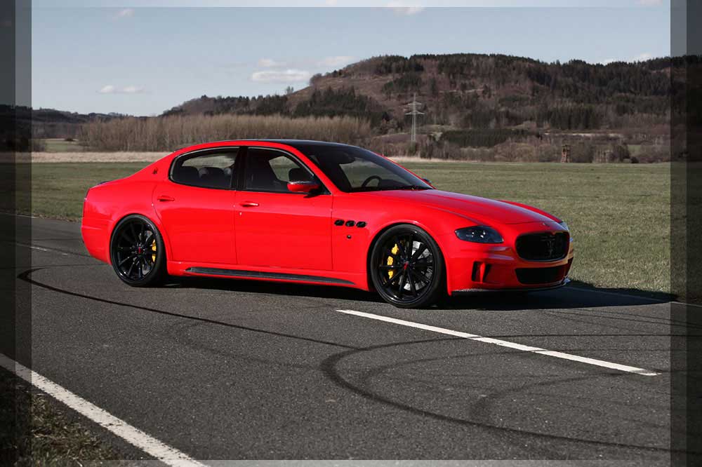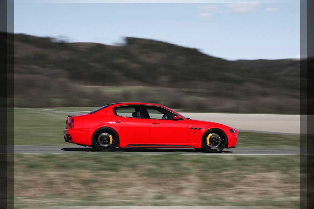 | Motor | Das neu Entwickelte BI-Kompressor System samt Ladeluftkühlung verschafft dem Quattroporte enorme Fahrleistung. Die Leistung des Fahrzeuges wird auf 580 PS und 570 NM hierdurch angehoben. Dies erreichen wir durch 0.35 bar Ladedruck. Der Sprint von 0-100 wird in nur 4.6 Sekunden absolviert. Der Drang nach Vorne endet kurz unter der 300 km/h Marke. |
