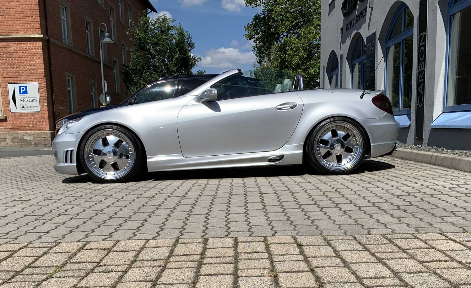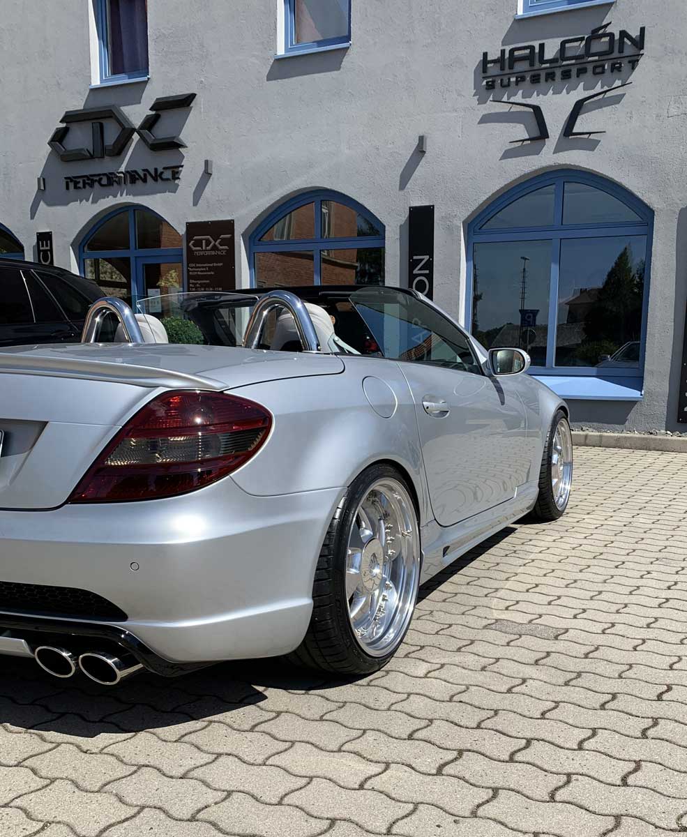 | Radsatz | Vorderachse: MAE Crowenjewel in 9x19,0 mit 225/35-19 Michelin Bereifung Hinterachse: MAE Crowenjewel in 10,5x19,0 mit 265/30-19 Michelin Bereifung Finish: Hochglanzverdichtet |