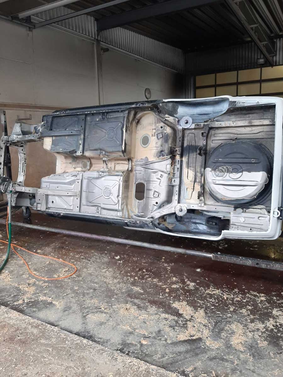 - Demontage des Fahrzeuges bis hin zur Rohkarosse