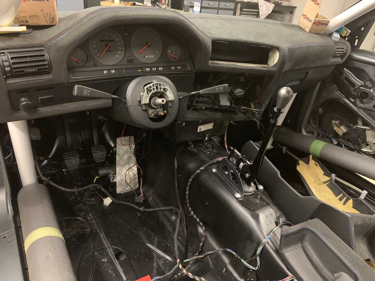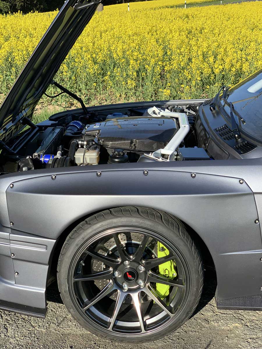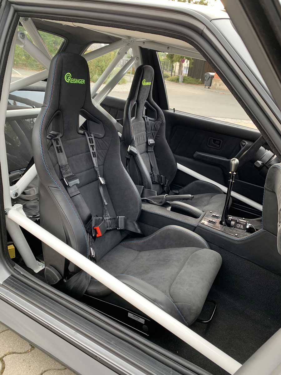 | Innenraum | Im Innenraum wurde ein Käfig mit 3 X Festverbaut zur Sicherheit verbaut. Armaturenbrett, Mittelkonsole, Türverkleidungen und die Recaro Sportster CS wurden in Leder Alcantara mit M-Nähten bezogen. |