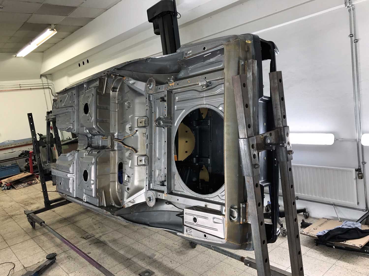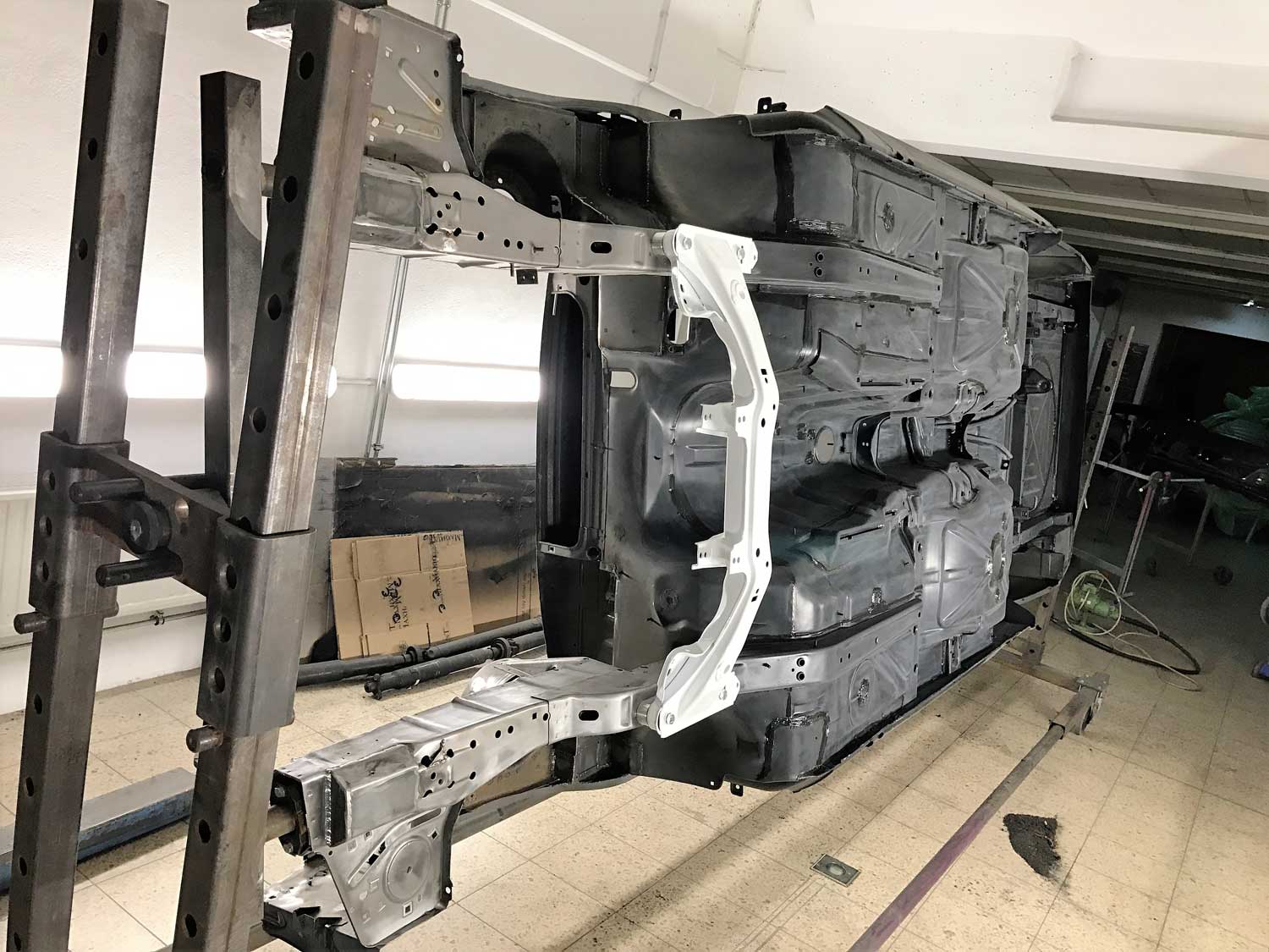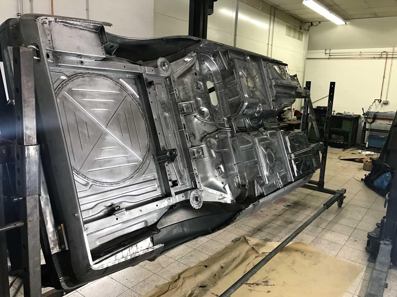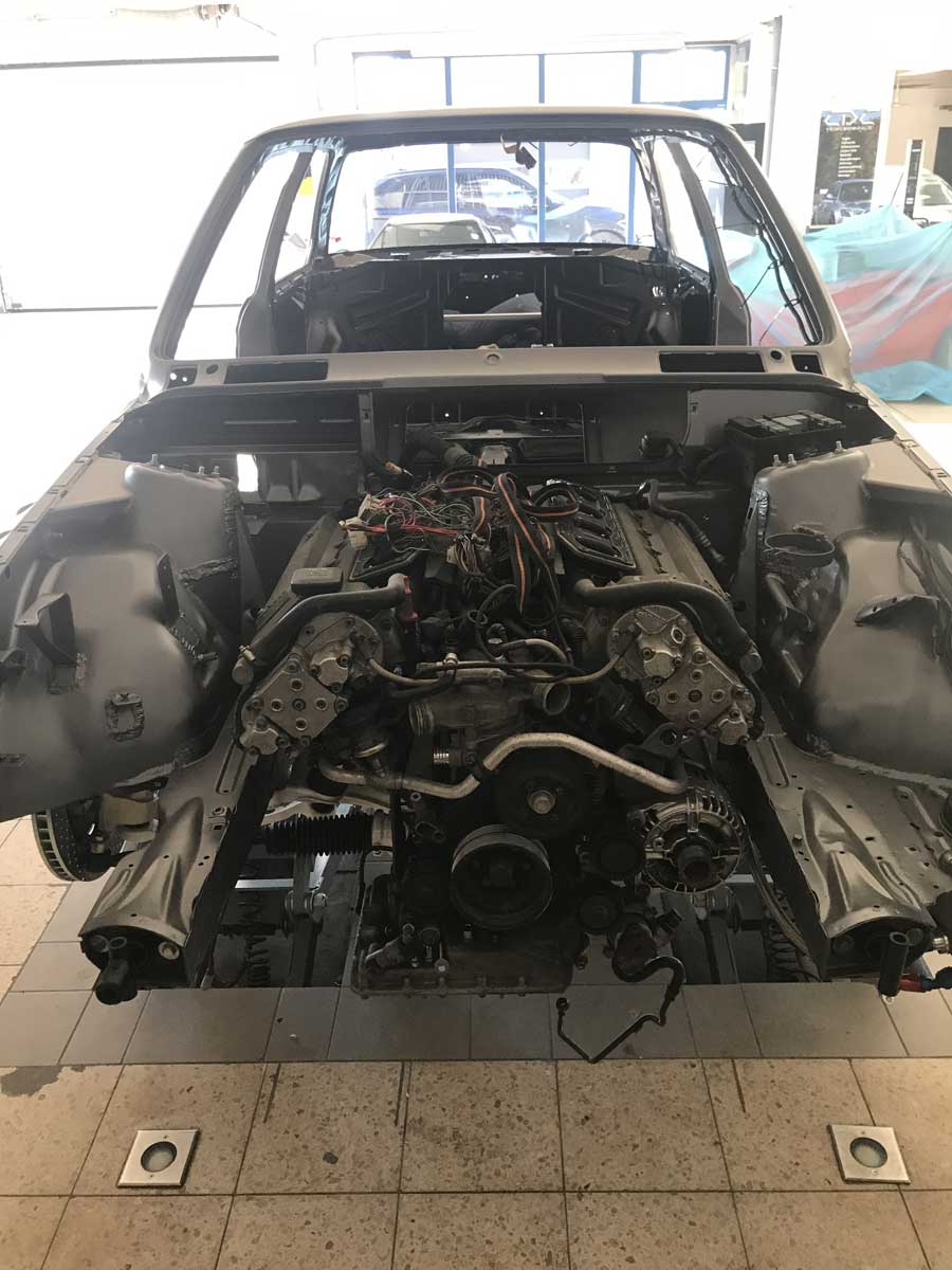 | Restaurierung | Das Fahrzeug wurde von uns TOTAL zerlegt, die Karosse wurde vollkommen Hochdruck Wassergestrahlt um jeglich Beschichtung zu entfernen. Danach wurden sämtliche nötigen Schweißarbeiten durchgeführt. Der Unterboden wurde neu Grundiert, abgedichtet und beschichtet. Der komplette Lackaufbau wurde von Grundauf neu gemacht. |