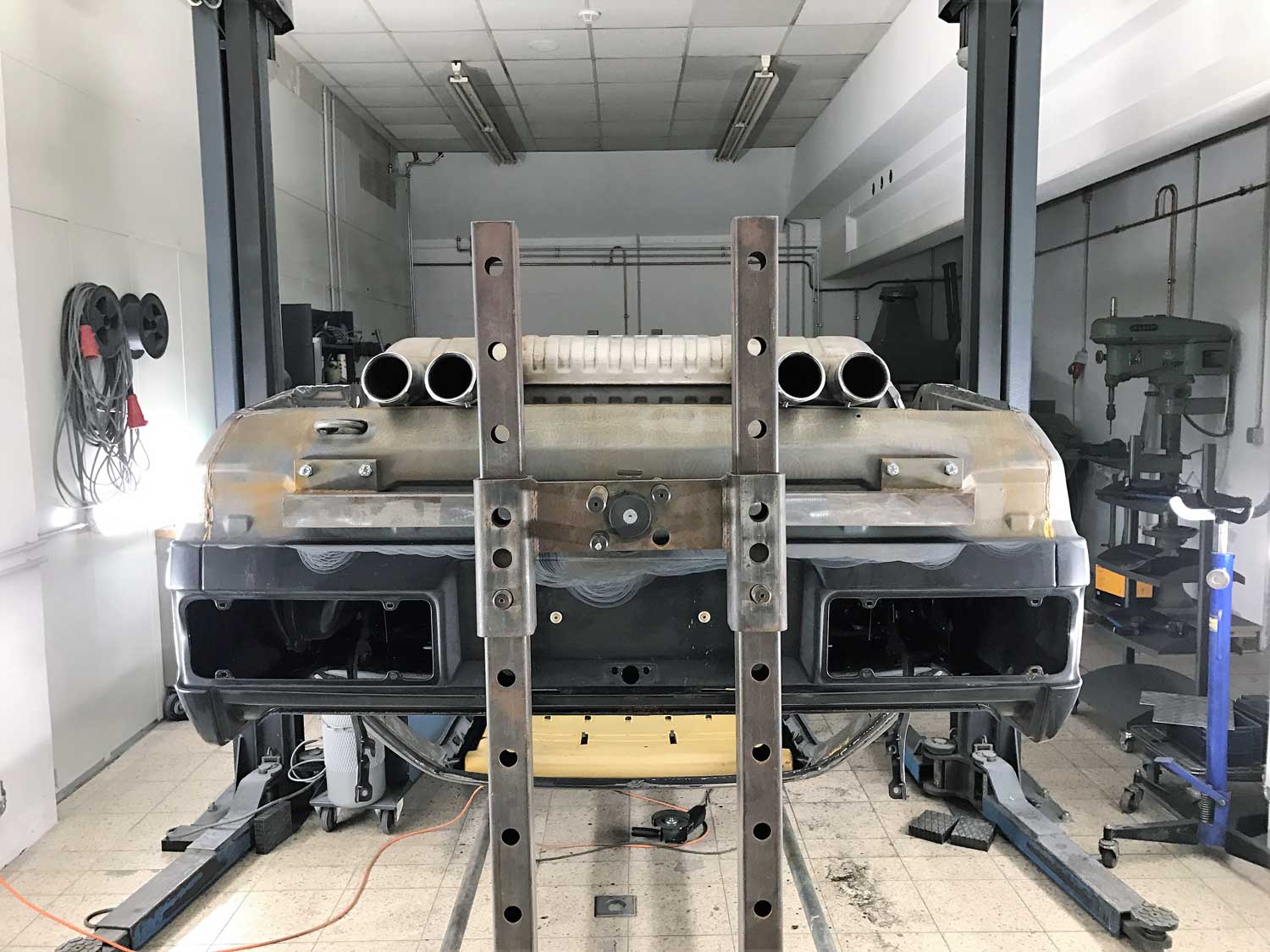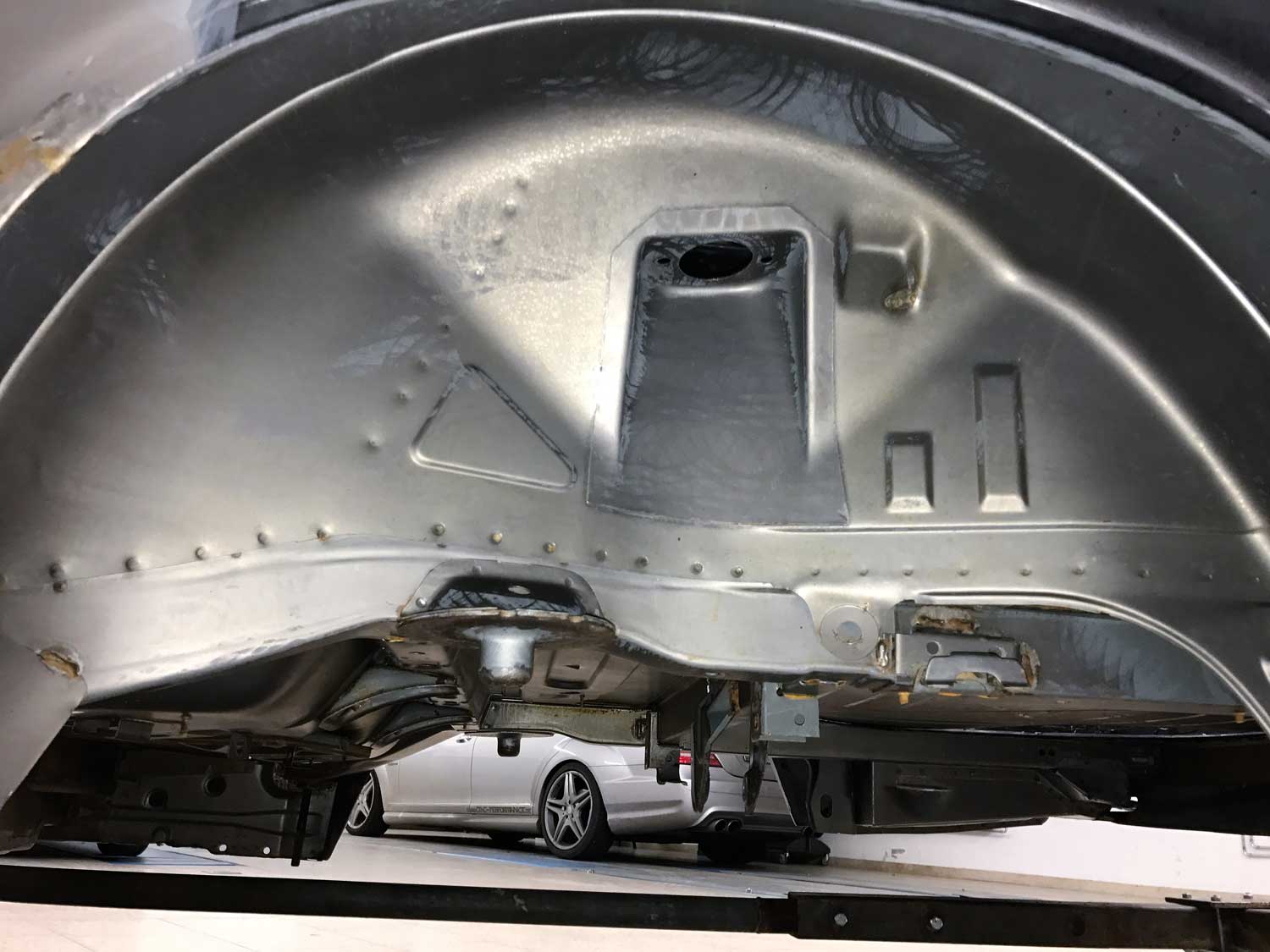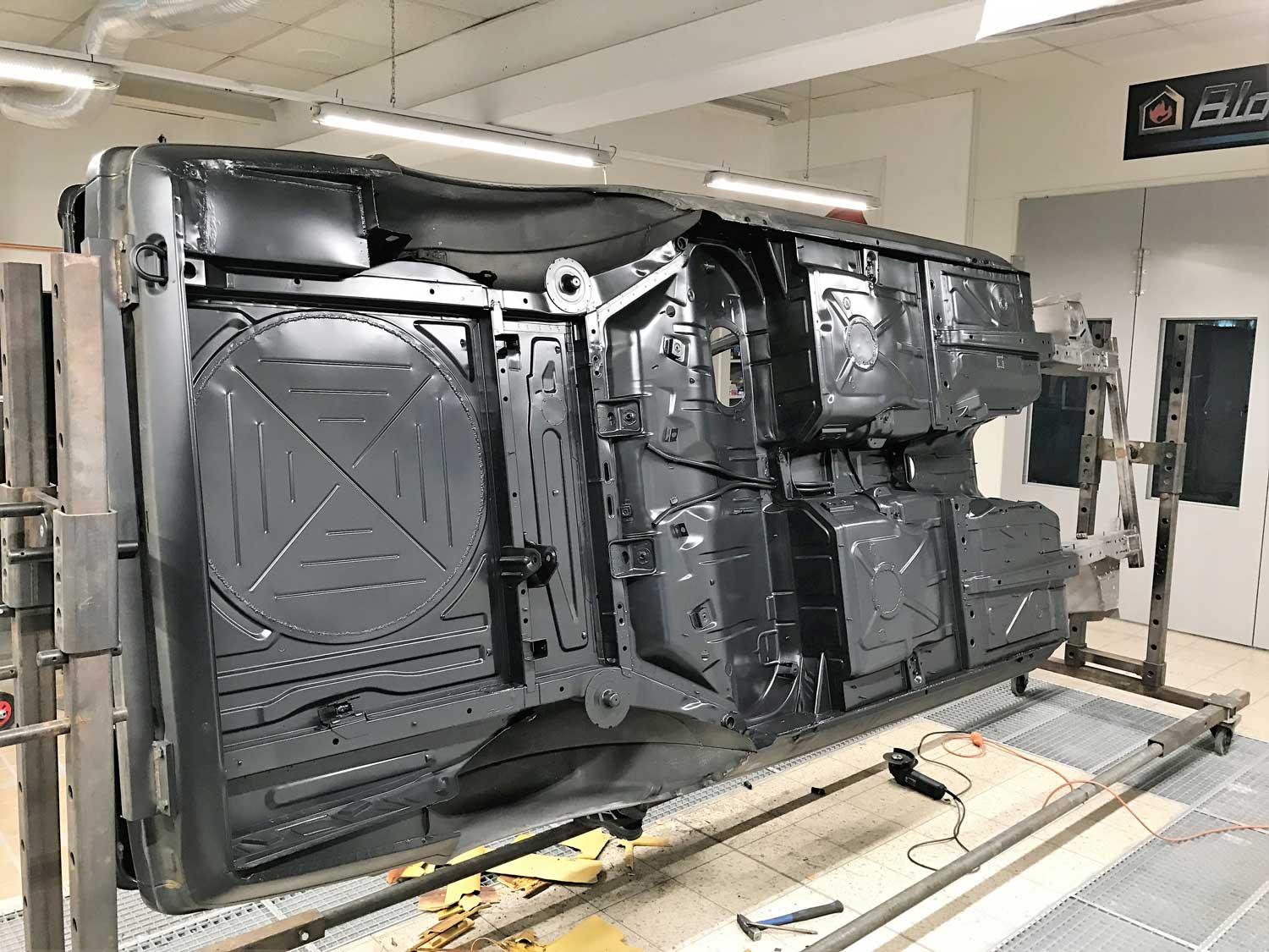 | Restaurierung | Das Fahrzeug wurde von uns TOTAL zerlegt, die Karosse wurde vollkommen Hochdruck Wassergestrahlt um jeglich Beschichtung zu entfernen. Danach wurden sämtliche nötigen Schweißarbeiten durchgeführt. Der Unterboden wurde neu Grundiert, abgedichtet und beschichtet. Der komplette Lackaufbau wurde von Grundauf neu gemacht. |