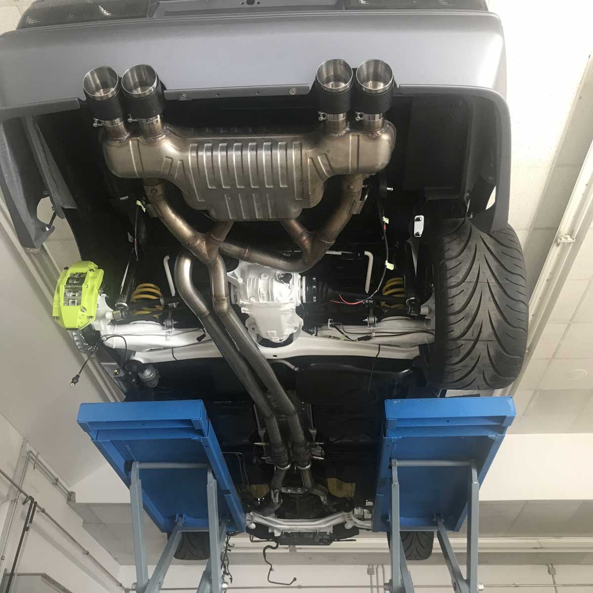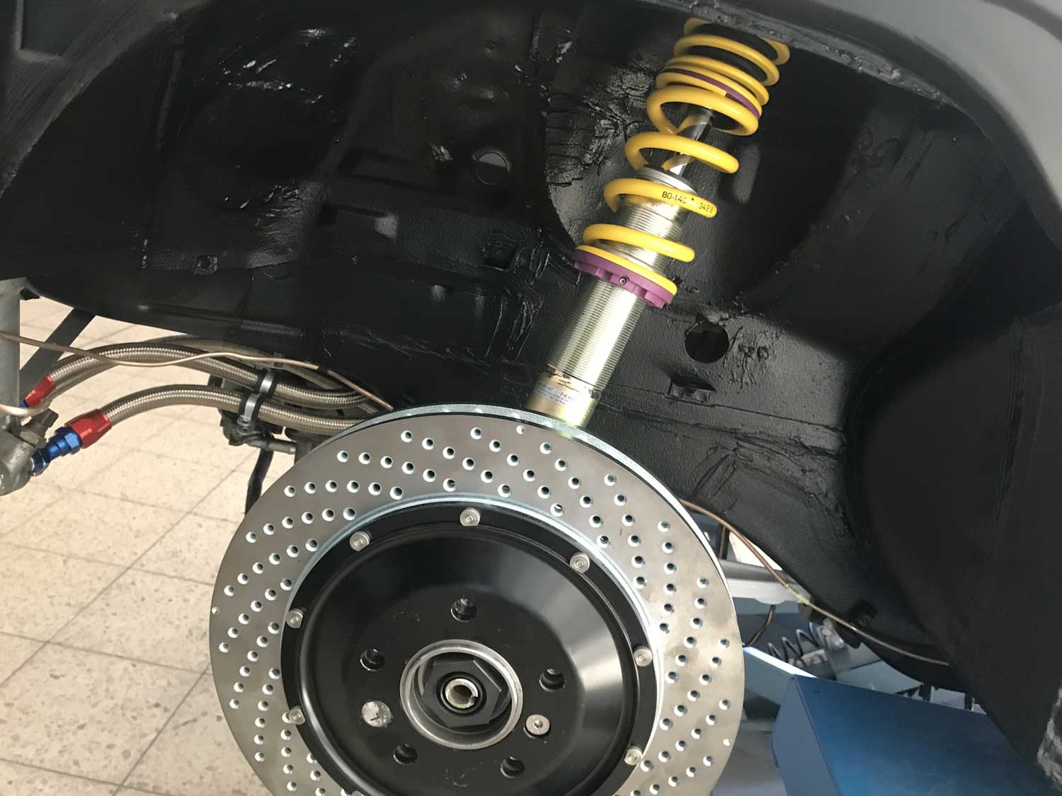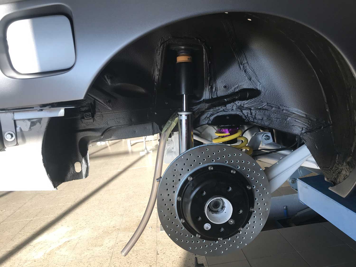 | Fahrwerk | Zum Einsatz hier kommt ein KW Gewindefahrwerk Variante 3 als Sonderanfertigung mit spezieller Abstimmung für den V8. |