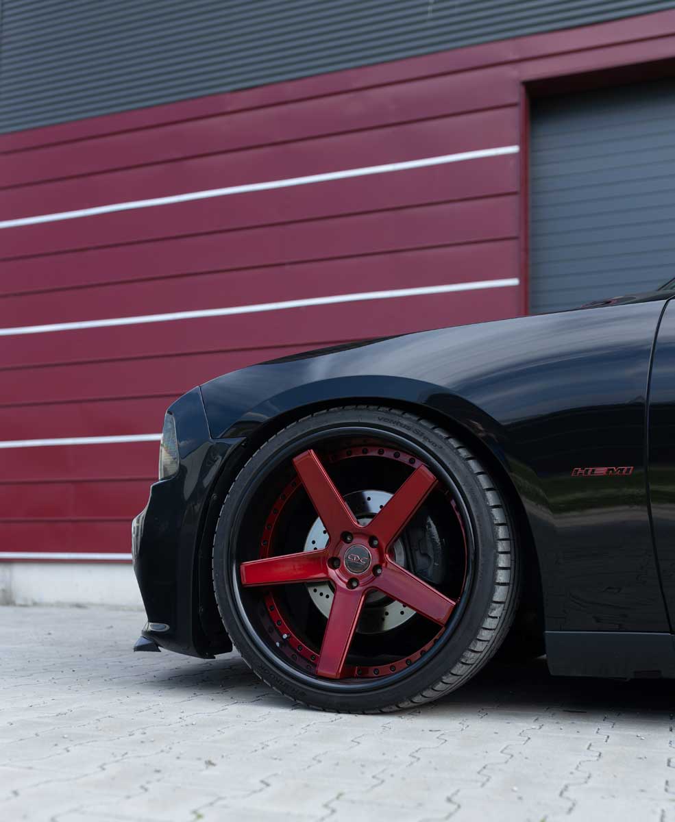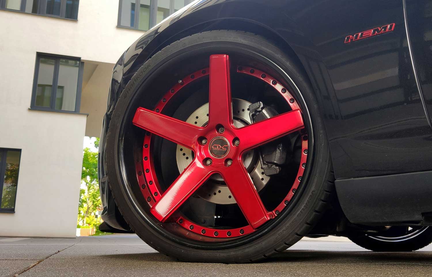 | Radsatz | VELLANO VUH in 10x22,0 mit 265/30-22 rundum Finish: Stern Gebürstet Candy Red Außenbett Glanz Schwarz Spurplatten 5mm(VA) und 3mm(HA) |