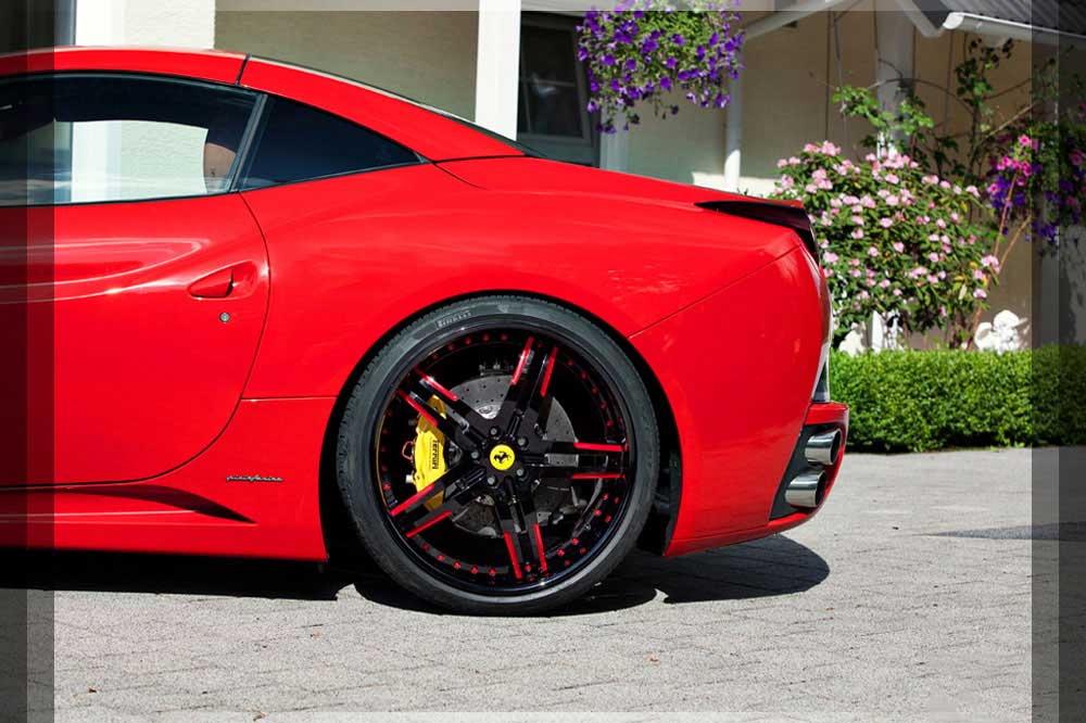 | Radsatz | Unsere Leichtmetallfelgen Forged VSU im sportlichen Design mit NERO-Finish fügen sich perfekt in die Siluette des California ein. Verbaut wurden hier 12.0x22.0 mit 315/25-22 an der Hinterachse und 9.0x21.0 mit 255/30-21 an der Vorderachse. |