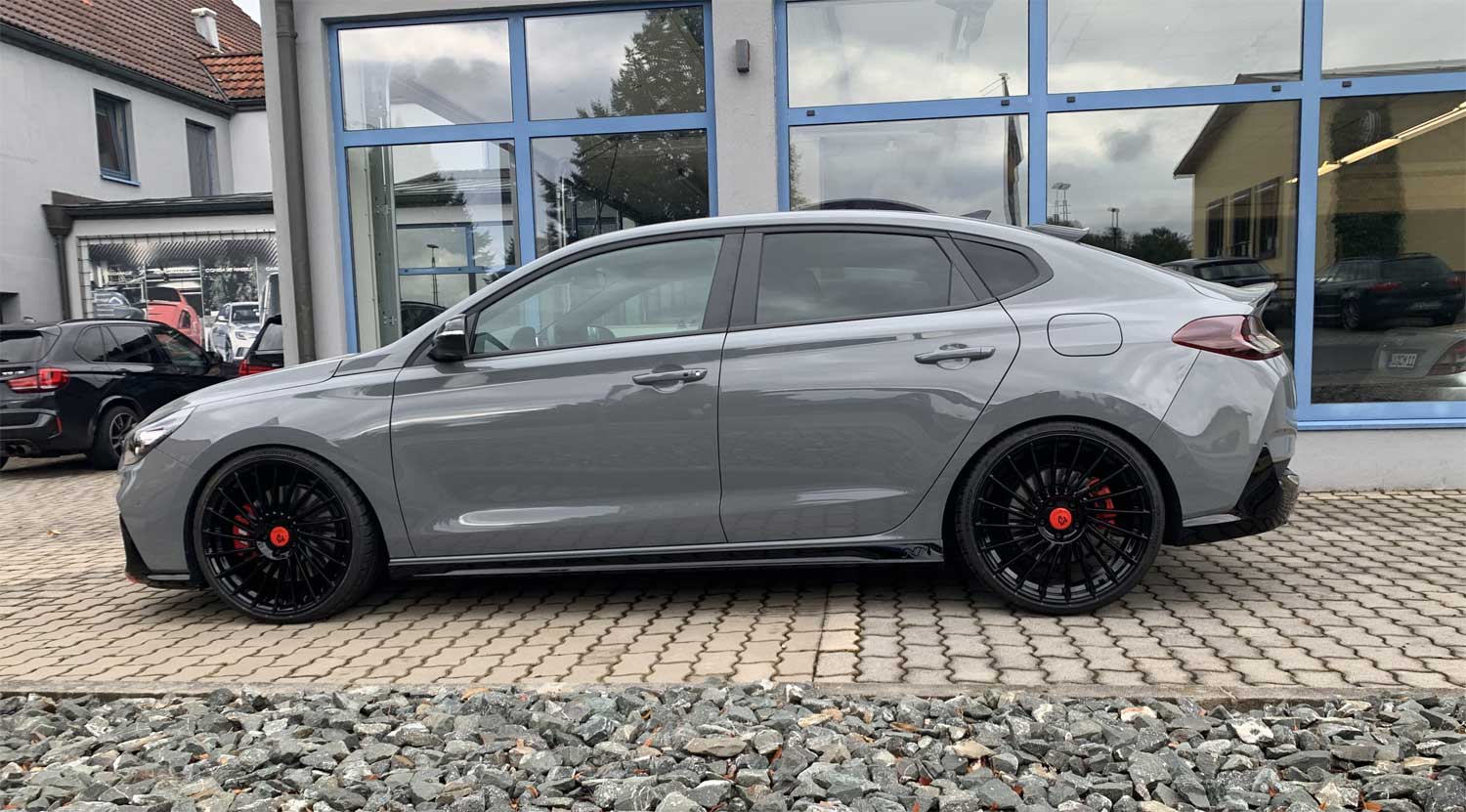 | Lackierung | Sämtliche Matt Schwarzen Anbauteile wie Seitenschweller, Frontspoiler, Diffusor, Frontgrill, Embleme und Front Gitter wurden von uns geglättet und Glanz Schwarz Lackiert. |