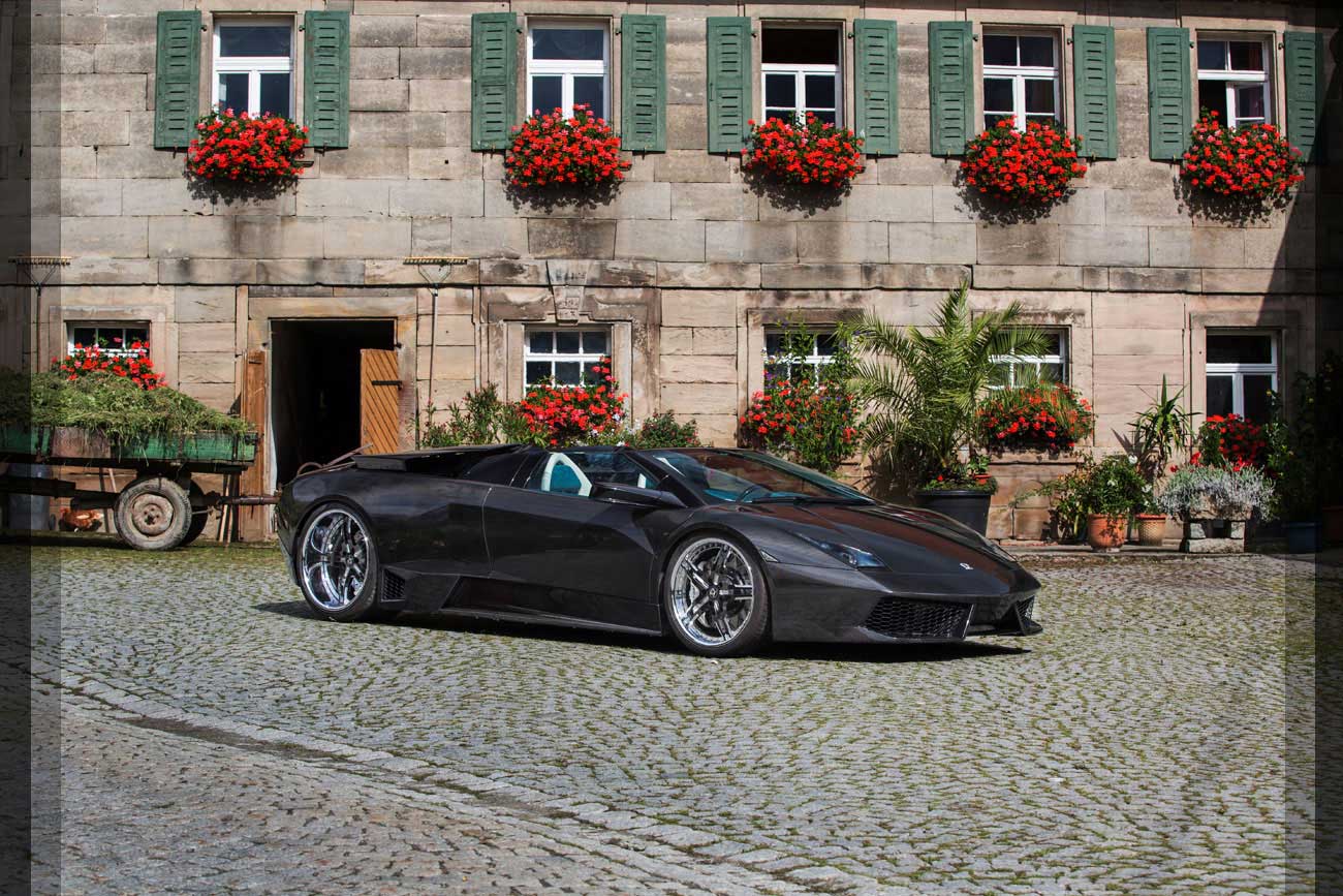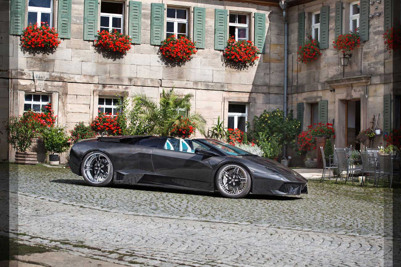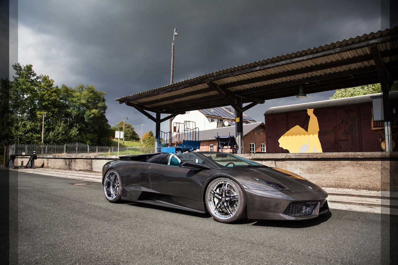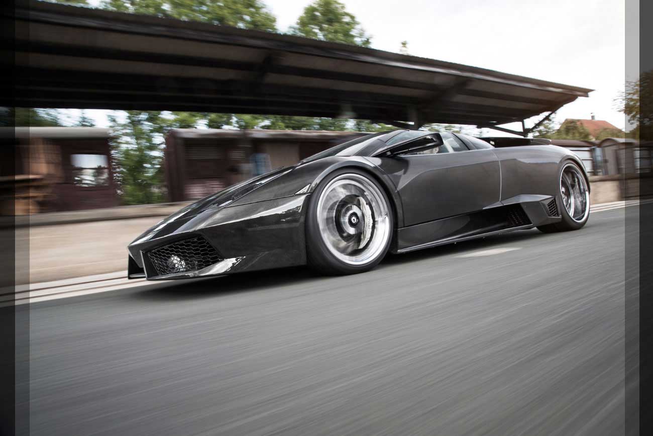 | Radsatz | Der speziell für unseren LM900 angefertigte Radsatz. Die Felgen sind CNC gefräst und 3-teilig. Vorderachse : 10,0x20,0 mit 275/30-20 Hinterachse : 13,5x21,0 mit 355/25-21 und enormen 13 cm Aussenbett Die Radläufe des Bodykits wurde exakt auf das Außenmaß der neuen Räder abgestimmt. |