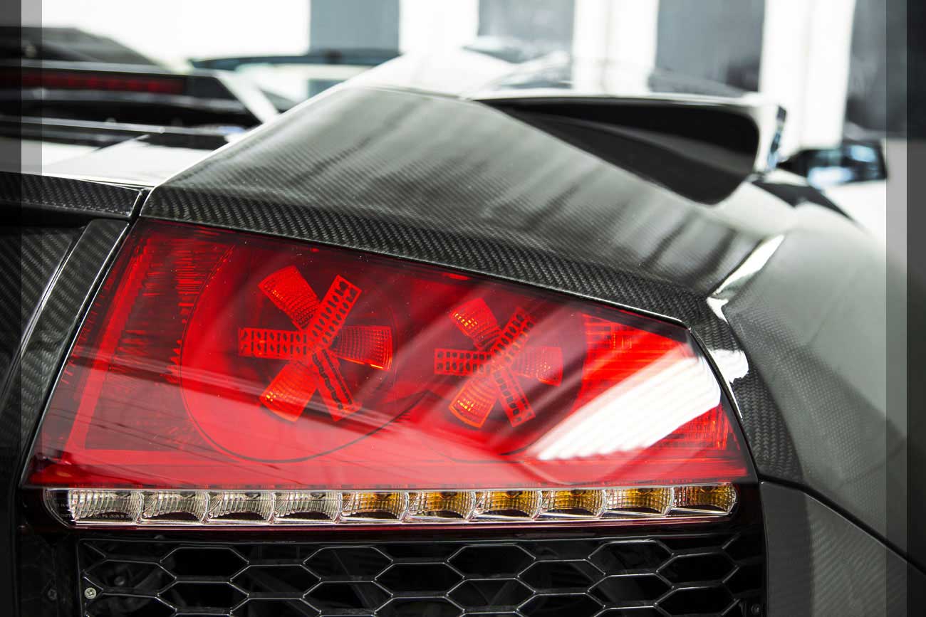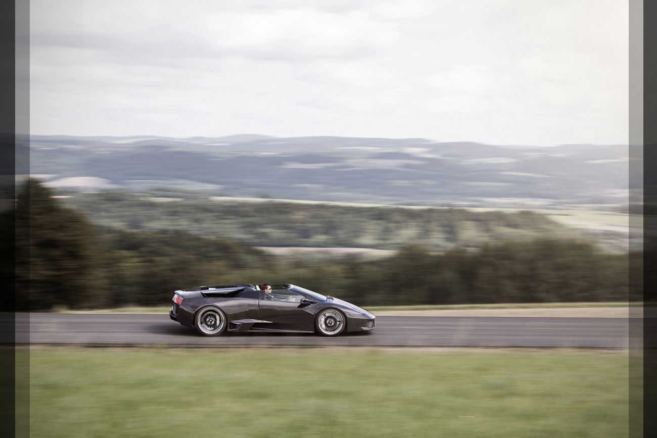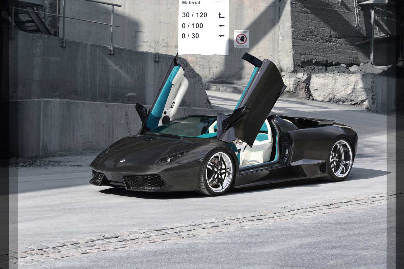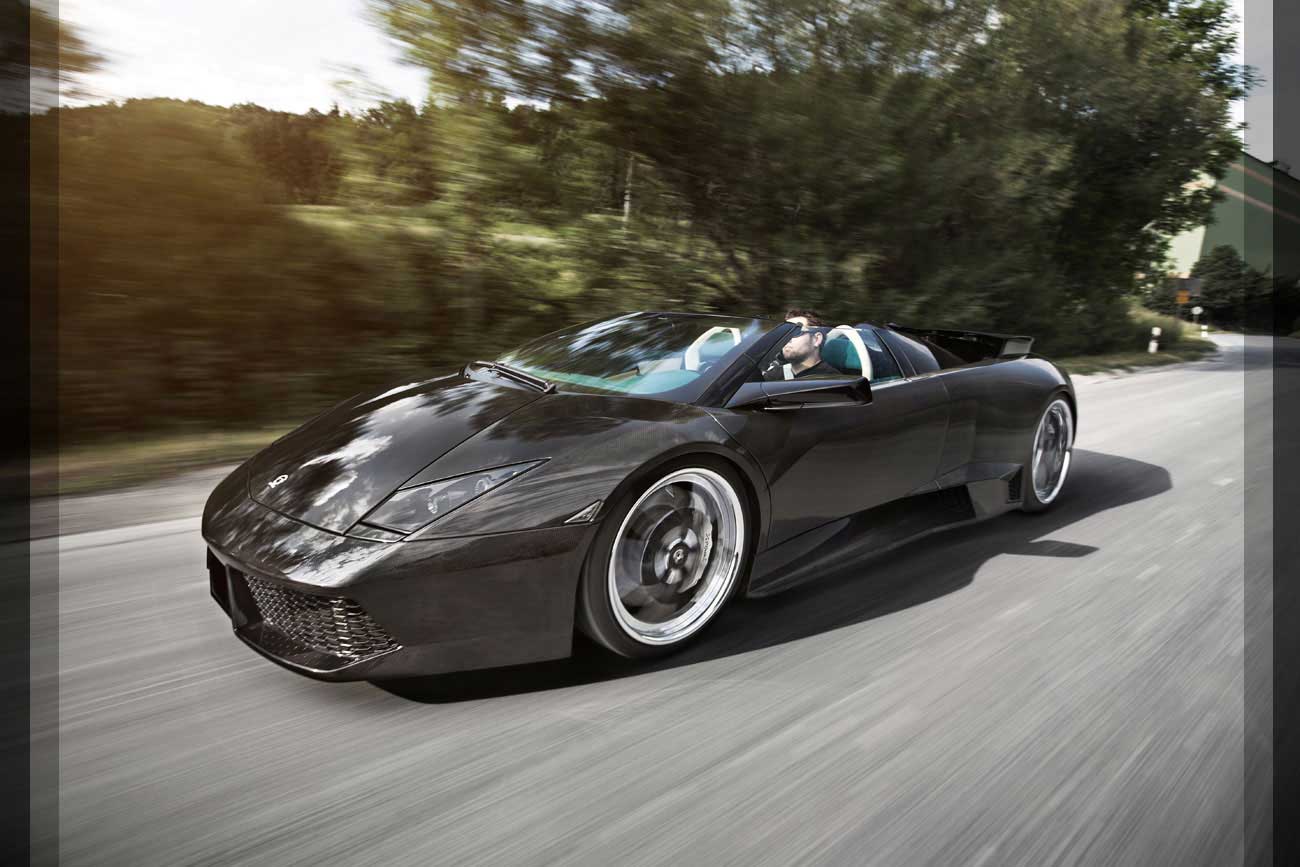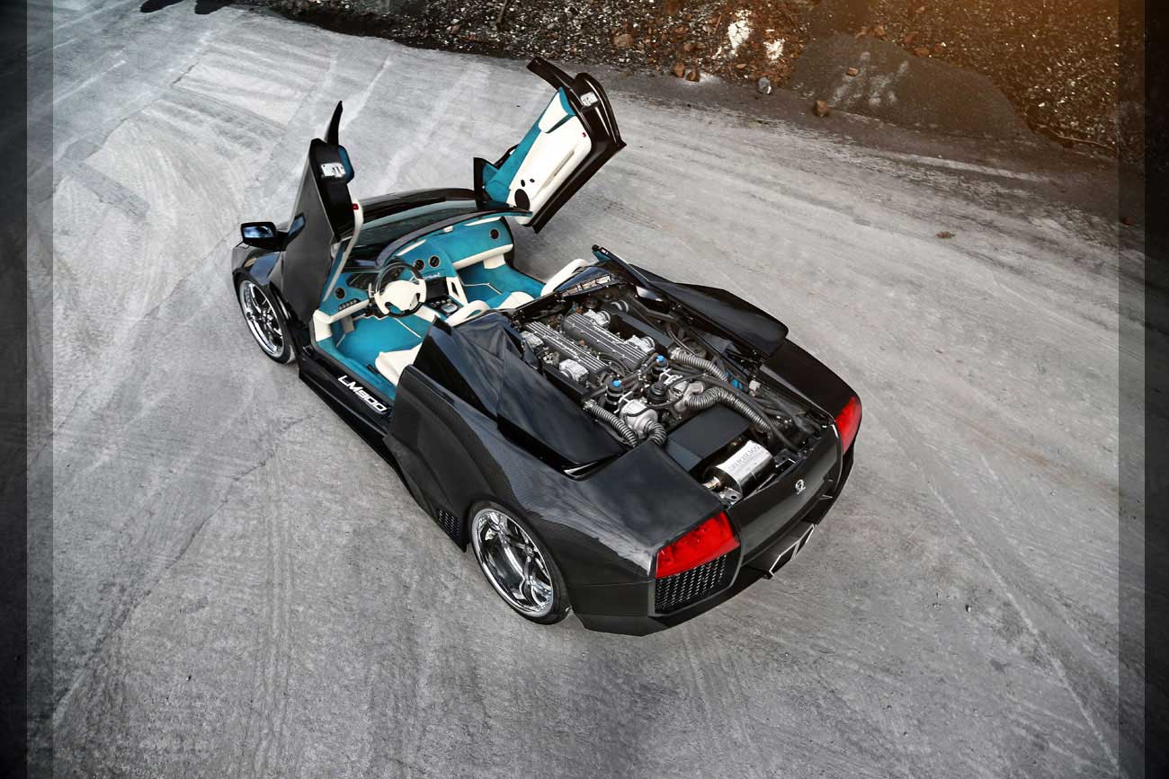 | Radsatz | Der speziell für unseren LM900 angefertigte Radsatz. Die Felgen sind CNC gefräst und 3-teilig. Vorderachse : 10,0x20,0 mit 275/30-20 Hinterachse : 13,5x21,0 mit 355/25-21 und enormen 13 cm Aussenbett Die Radläufe des Bodykits wurde exakt auf das Außenmaß der neuen Räder abgestimmt. |