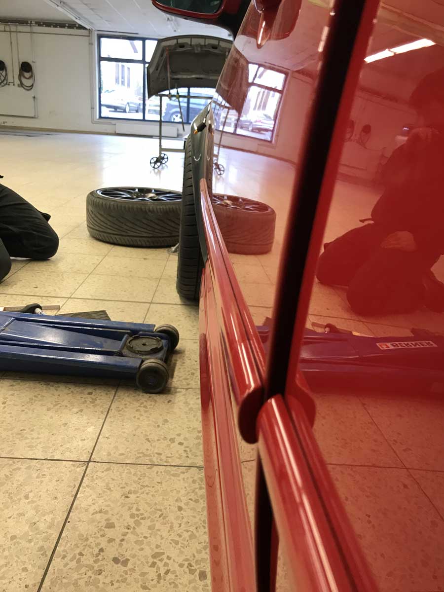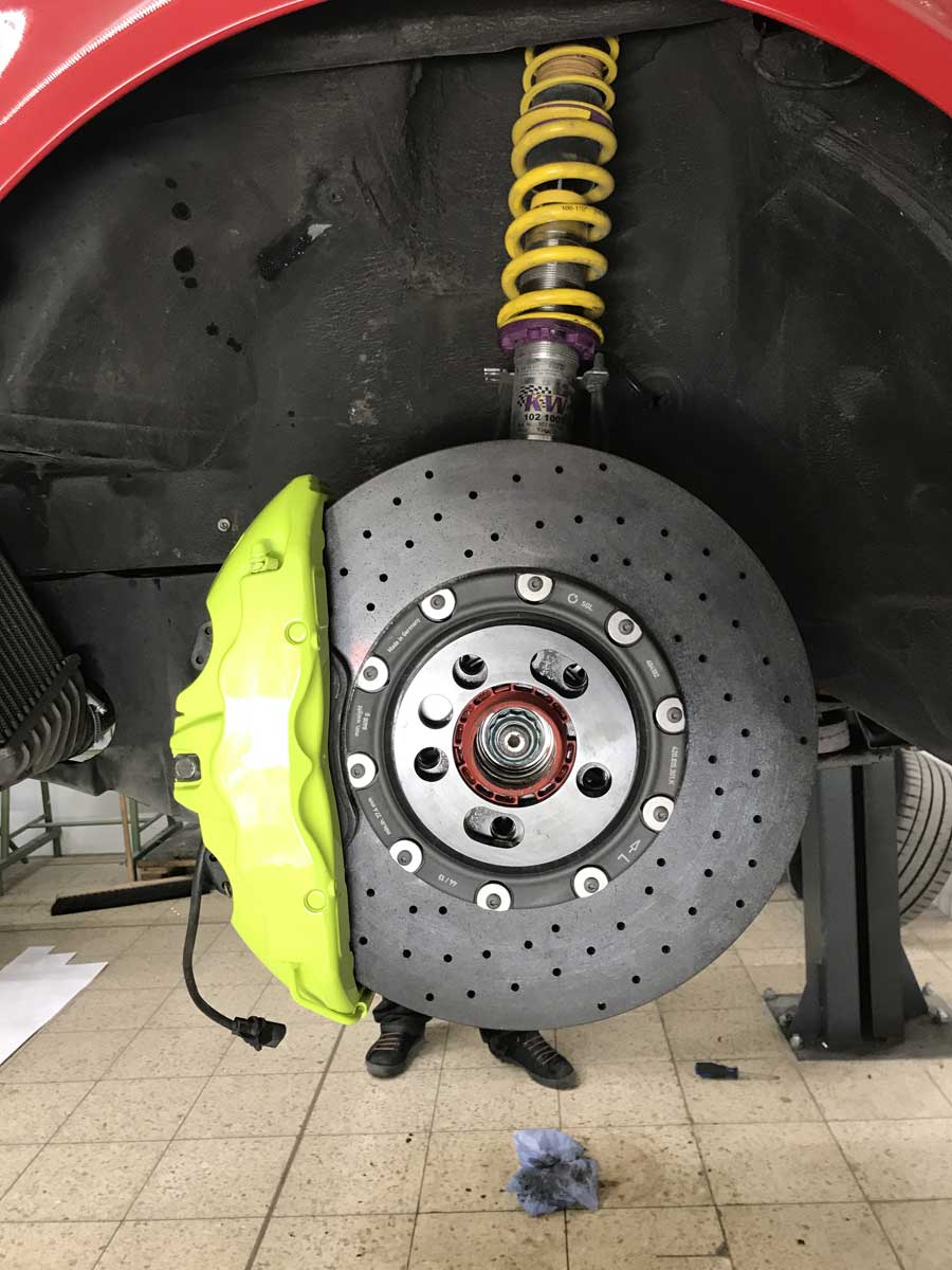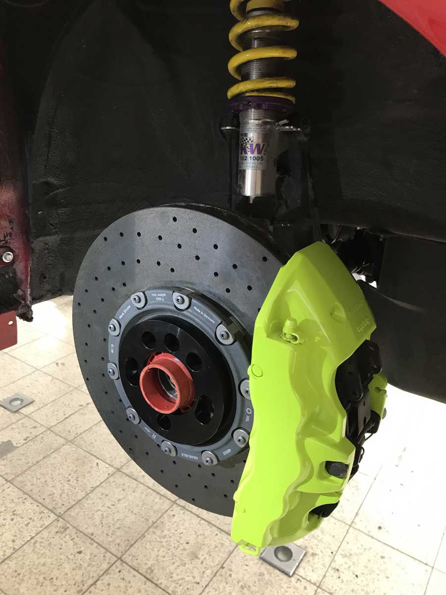 FahrwerkZum Einsatz kam hier ein KW Gewindefahrwerk Variante 3 Clubsport mit einstellbaren Sturzlagern.